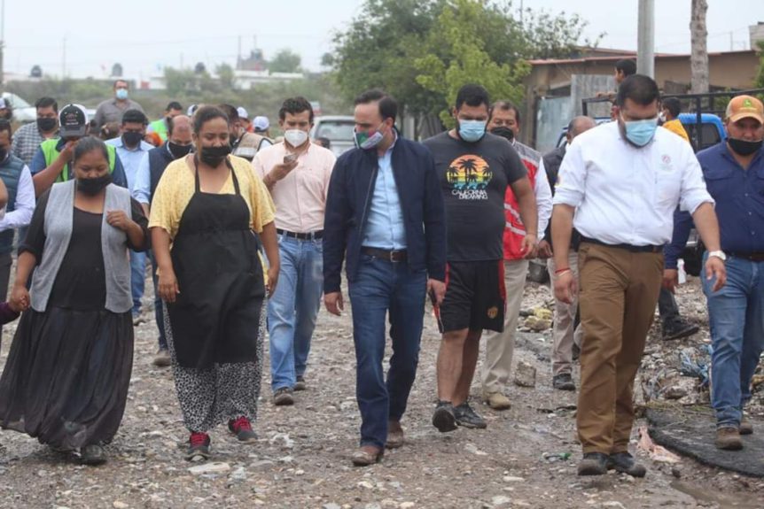 Manolo Jiménez también estuvo en la colonia Gaspar Valdez en la que, de igual forma, se comprometió a estar de cerca con las personas afectadas por el fenómeno natural.