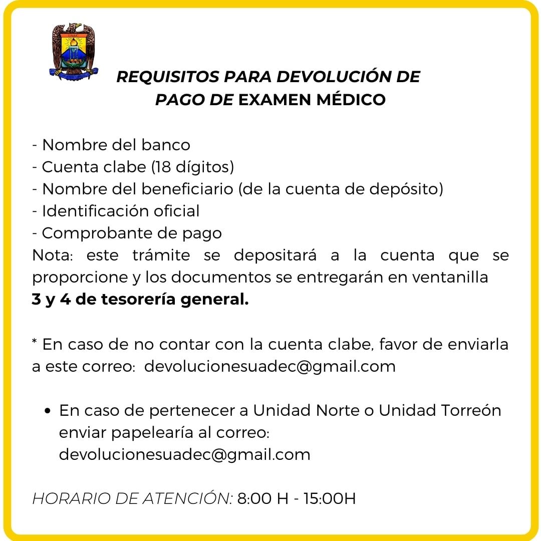 SALTILLO, Coahuila; 04 de agosto de 2020.- La Universidad Autónoma de Coahuila a través de la Tesorería General informa a los alumnos sobre el proceso a seguir para la devolución del pago del Examen Médico, así como el reembolso a aquellos que ya realizaron el pago de las cuotas anuales de inscripción para el semestre agosto-diciembre de 2020, a las cuales se les hizo una reducción de un 8.3 por ciento y que fue aprobado el lunes 3 de agosto en la Sesión Extraordinaria del Honorable Consejo Universitario.