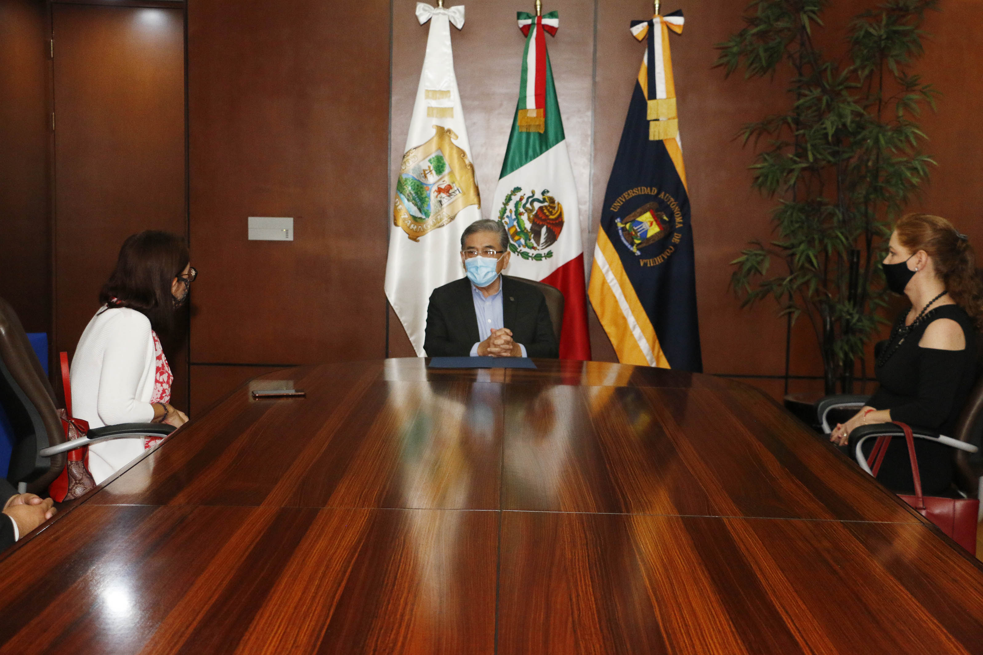 SALTILLO, Coahuila; 17 de agosto de 2020.- El rector de la Universidad Autónoma de Coahuila, Salvador Hernández Vélez, entregó este lunes nombramientos a las titulares de la Defensoría de los Derechos Humanos Universitarios y del Tribunal Universitario para la Atención de los Casos de Violencia de Género.