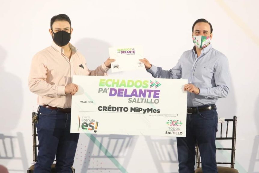 El alcalde Manolo Jiménez Salinas comenzó la entrega de más de 600 créditos a Micro, pequeñas y medianas empresas de Saltillo, como parte del proyecto Echados Pa’ Delante, iniciativa diseñada en coordinación con el gobernador Miguel Ángel Riquelme Solís, dentro del Plan de Reactivación Económica.