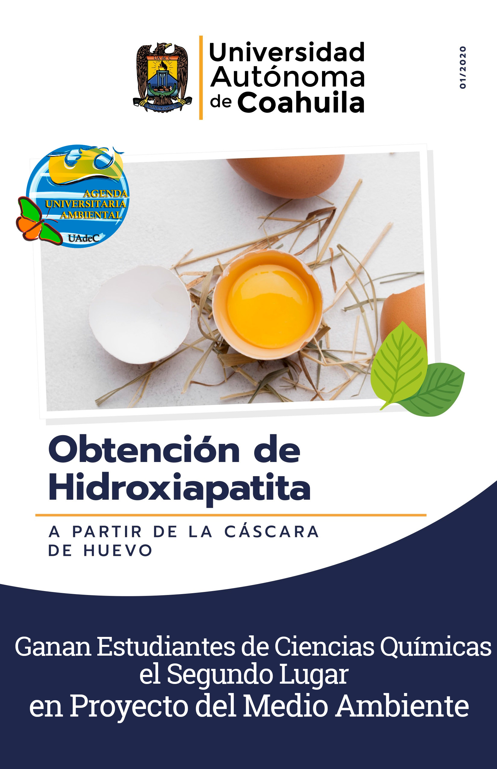 "Hidroxiapatita a partir de la cáscara de huevo", tiene como objetivo recolectar la cáscara de huevo de las diferentes cafeterías de la Universidad, para posteriormente tratarla, con el fin de que sirva como precursor para la síntesis de hidroxiapatita, un biomaterial utilizado como reactivo en áreas de investigación de las ciencias biomédicas y químicas.