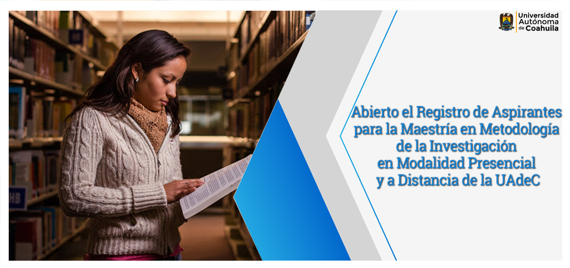 SALTILLO, Coahuila; 22 de septiembre de 2020.- La Universidad Autónoma de Coahuila, a través de la Facultad de Ciencia Educación y Humanidades, convoca a formar parte de la Maestría en Metodología de la Investigación en modalidad presencial y a distancia.