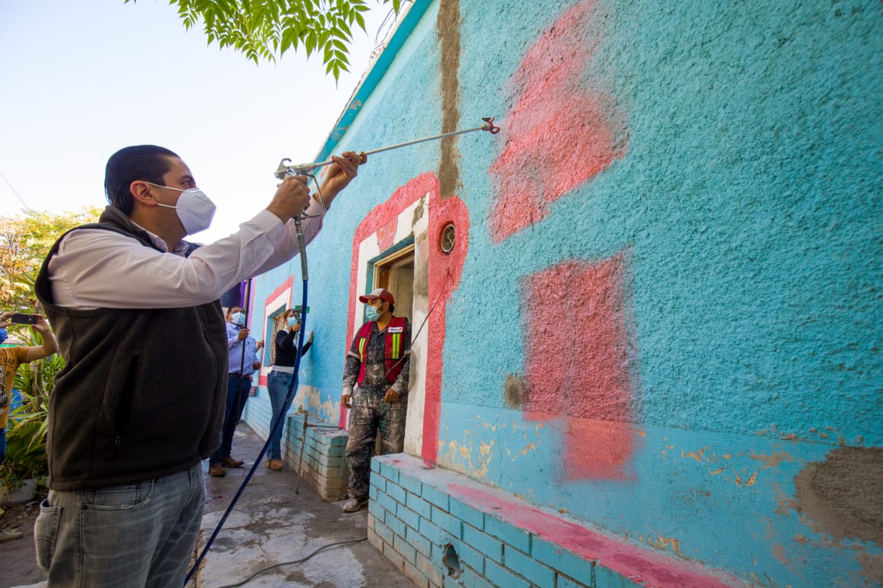 El alcalde de Ramos Arizpe, Chema Morales, en compañía del Secretario de Desarrollo Social Tomás Gutiérrez, iniciaron las labores de embellecimiento de fachadas a través de “Enchúlame la casa”, en esta ocasión en la colonia Guanajuato de Arriba uno de los barrios más antiguos y emblemáticos de Ramos Arizpe.
