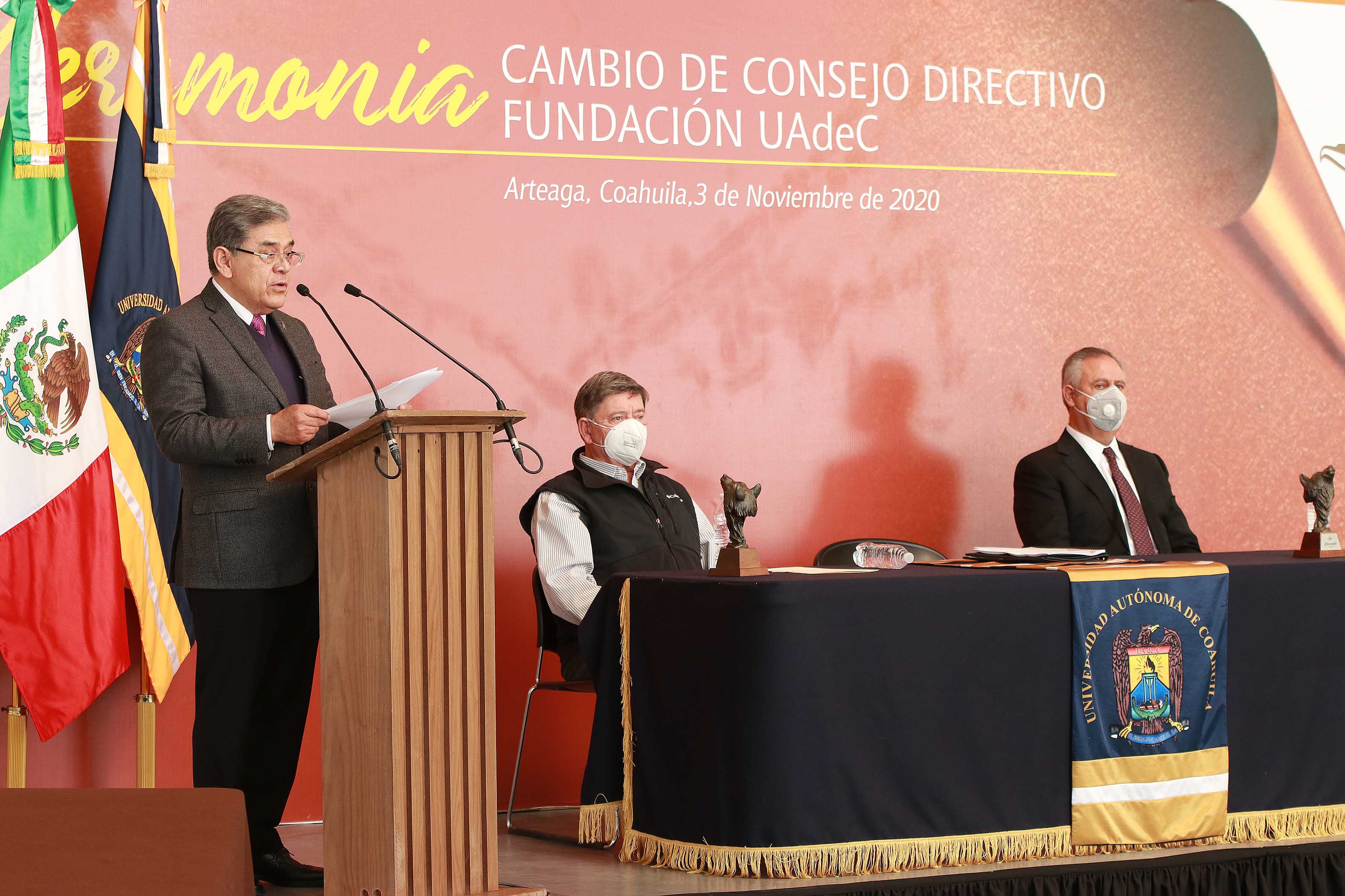 La ceremonia fue presidida por el rector y presidente honorario de la Fundación UAdeC, Salvador Hernández Vélez, contando con la presencia del coordinador de la Unidad Saltillo, Julio Saucedo Zul, el tesorero, Jorge Alanís Canales, así como integrantes de la Fundación UAdeC, entre ellos el secretario general, Ernesto Barrera Fuentes, tesorero, Gustavo Dávila Salinas y el comisario, Jesús Felipe de la Garza.