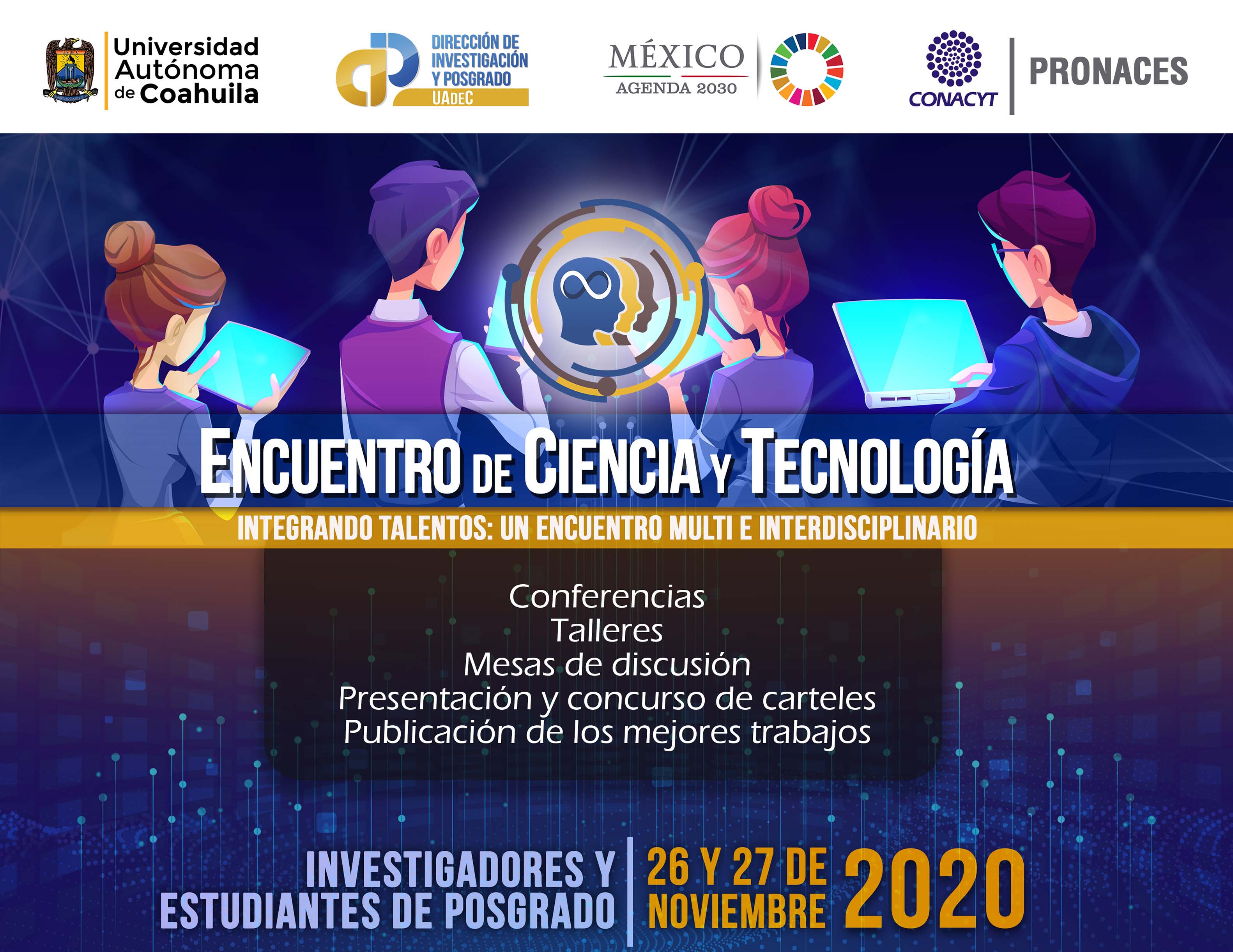 SALTILLO, Coahuila; 10 de noviembre de 2020.- En el marco del Encuentro de Ciencia y Tecnología (ECyT) en su edición 2020, evento virtual organizado por la Universidad Autónoma de Coahuila, la Dirección de Investigación y Posgrado convoca a estudiantes de posgrado a participar como ponentes en el Primer Encuentro Científico Estudiantil y enviar sus propuestas antes del 12 de noviembre.