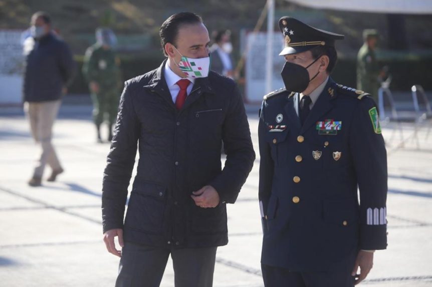 “Cuente con nosotros para seguir trabajando por la seguridad, en Saltillo y en Coahuila hemos trabajado en equipo y de manera muy coordinada, lo cual nos ha dado muy buenos resultados”, comentó Jiménez Salinas al dar la bienvenida al comandante Nava Sánchez.
