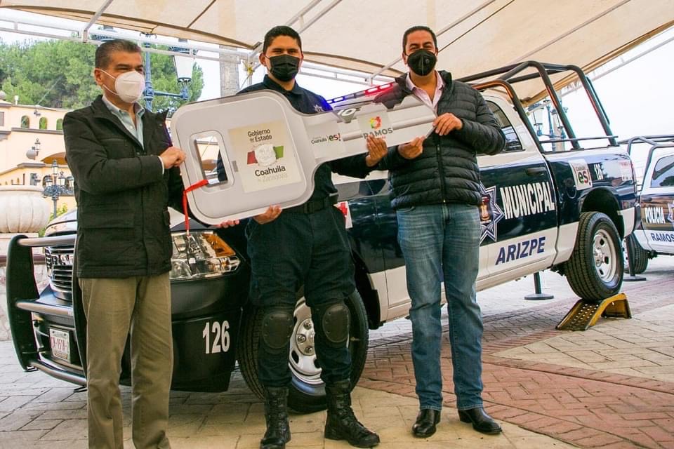 - Gracias al Gobernador Miguel Angel Riquelme Solis, Ramos Arizpe cuenta con 5 patrullas más para brindar seguridad pública a sus ciudadanos. Somos el municipio de Coahuila que cumple al 100% con la fuerza policial que marca la ONU: Chema Morales.