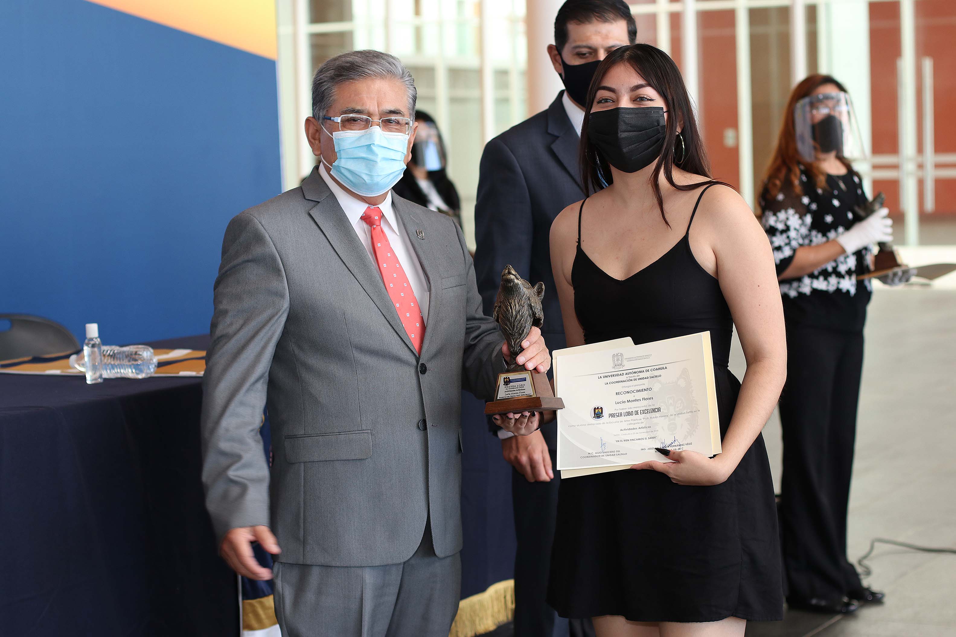 SALTILLO, Coahuila; 25 de noviembre de 2020.- Con el objetivo de reconocer a las y los alumnos destacados en el ámbito académico, deportivo, cultural, liderazgo, innovación y compromiso social, la Universidad Autónoma de Coahuila a través de la Coordinación Unidad Saltillo, llevó a cabo la entrega de la Presea Lobo en su Vigésima Primera Edición.