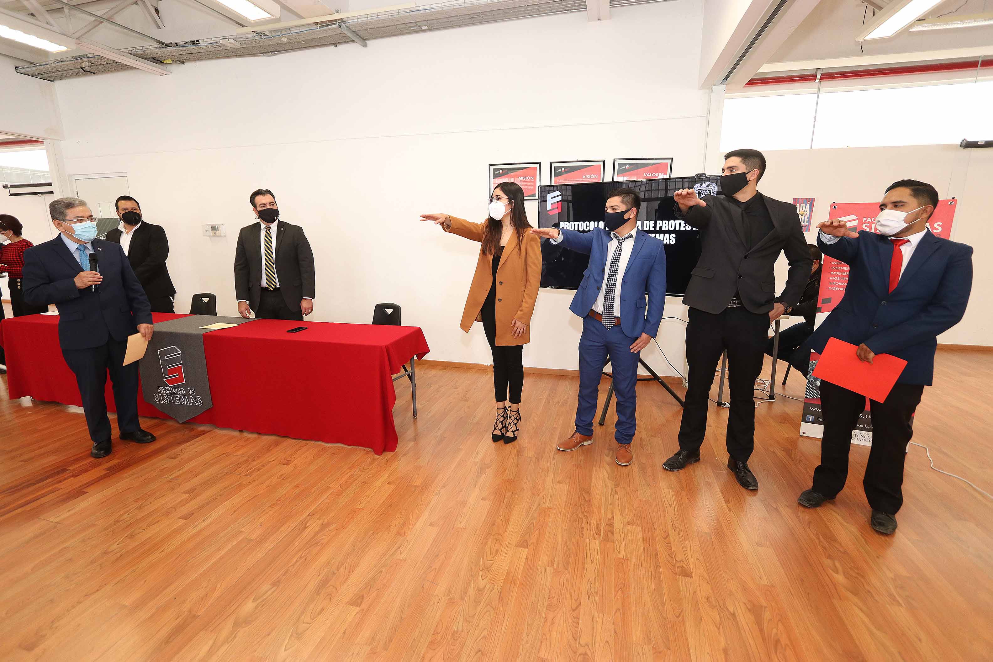 Por su parte, el director de la Facultad de Sistemas, Jesús Rabindranath Galván Gil, convocó a los nuevos consejeros e integrantes de la sociedad de alumnos a continuar trabajando de manera fuerte, sólida e innovadora, haciendo frente a los retos actuales y venideros.