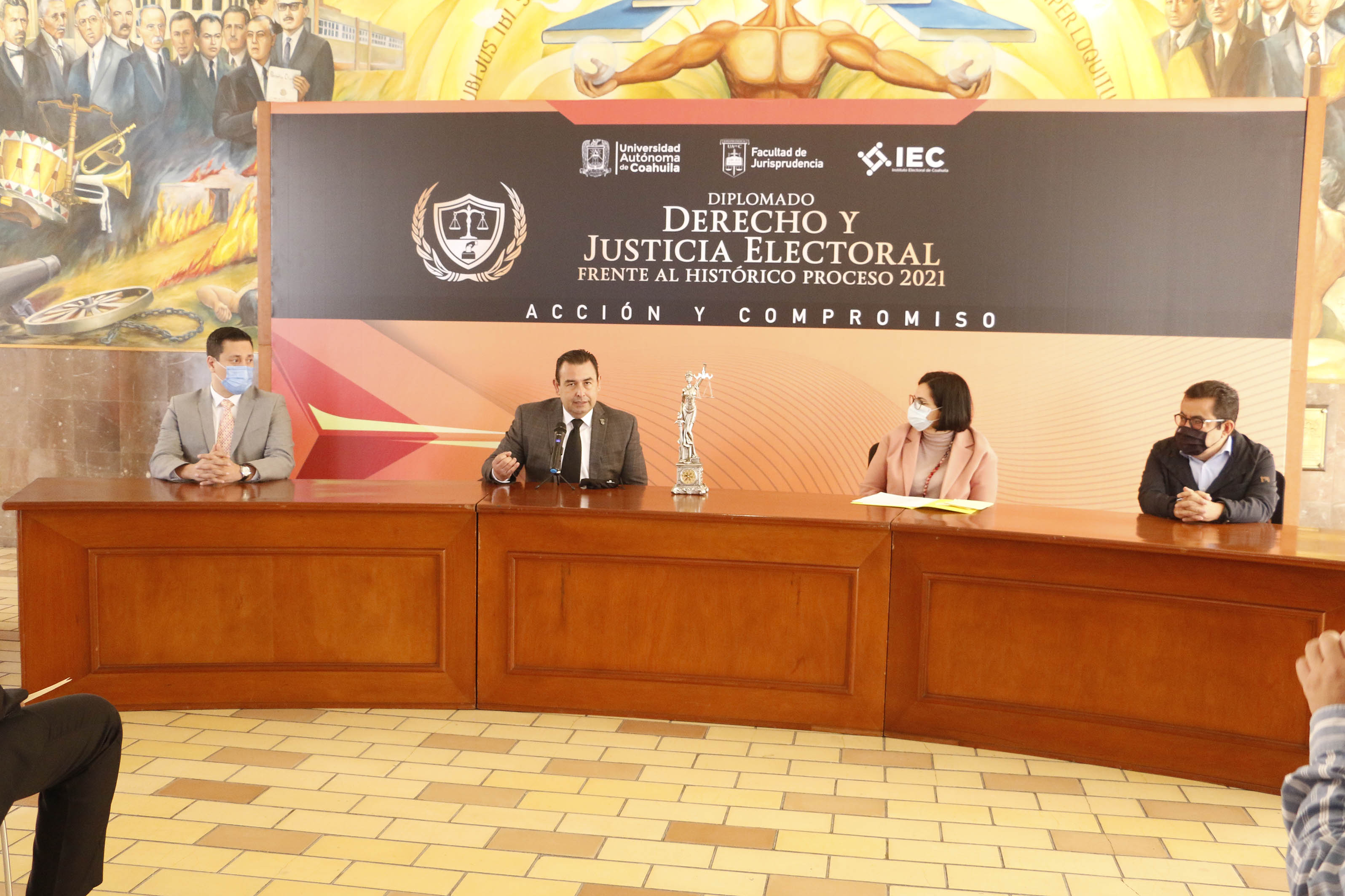 SALTILLO, Coahuila; 15 de diciembre de 2020.- Con el fin de contribuir a la profesionalización de la función electoral y propiciar el fortalecimiento democrático de Coahuila y México, sus instituciones y procedimientos frente al nuevo Sistema Nacional de Elecciones, la Facultad de Jurisprudencia de la Universidad Autónoma de Coahuila invita al Diplomado Derecho y Justicia Electoral Frente al Histórico Proceso 2021.