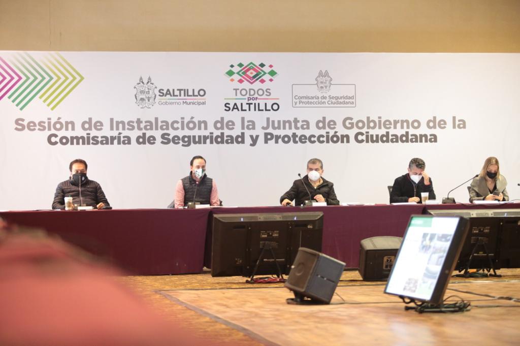 · Atestigua gobernador Miguel Riquelme la instalación de la Junta de Gobierno de la Comisaría de Seguridad y Protección Ciudadana de Saltillo.Saltillo, Coahuila de Zaragoza; a 4 de Enero de 2021.- El gobernador Miguel Ángel Riquelme Solís acudió como testigo de honor a la instalación de la Junta de Gobierno de la Comisaría de Seguridad y Protección Ciudadana de Saltillo, presidida por el alcalde Manolo Jiménez Salinas.