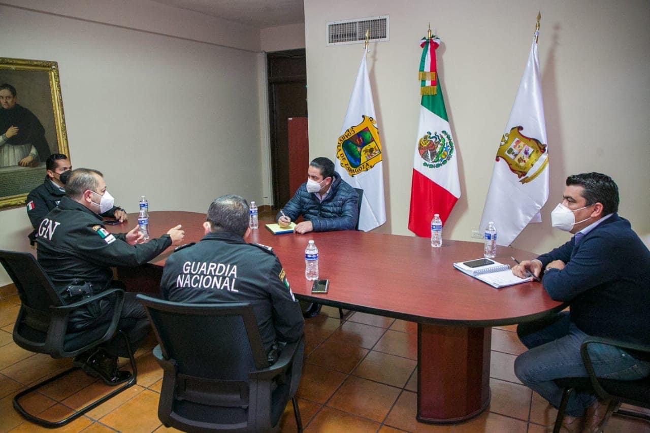Se reúne Chema Morales con mandos de la Guardia Nacional y el Secretario del Ayuntamiento, Alejandro González, para definir estrategias para la seguridad de los ramosarizpenses.