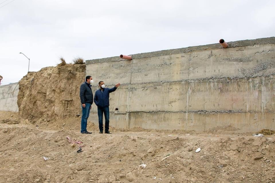 Supervisa Chema Morales la instalación de un muro de contención de más de 300 toneladas concreto y la limpieza del arroyo Santa Luz Analco, para mayor seguridad de quienes transitan por ahí.
