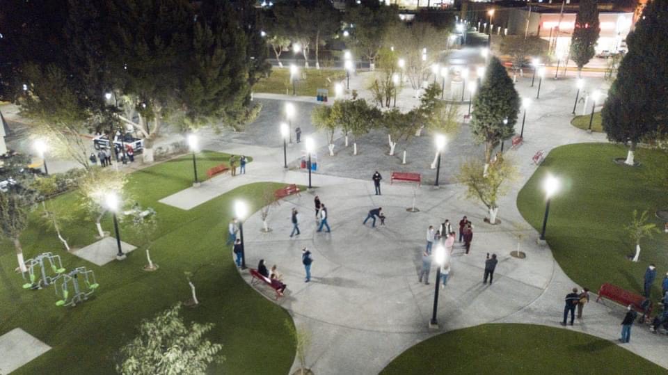 Junto a familias de Ramos Arizpe, realiza Chema Morales el encendido de la Plaza Francisco Coss en la Colonia Capellanía.