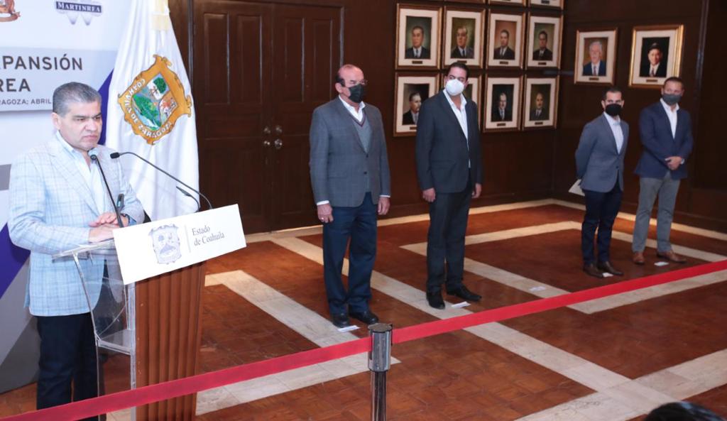 "Lo anterior demuestra la fortaleza económica de Coahuila", añadió Miguel Riquelme, y mencionó que en tiempos de pandemia como los actuales es satisfactorio que Martinrea confíe de nuevo en la entidad.