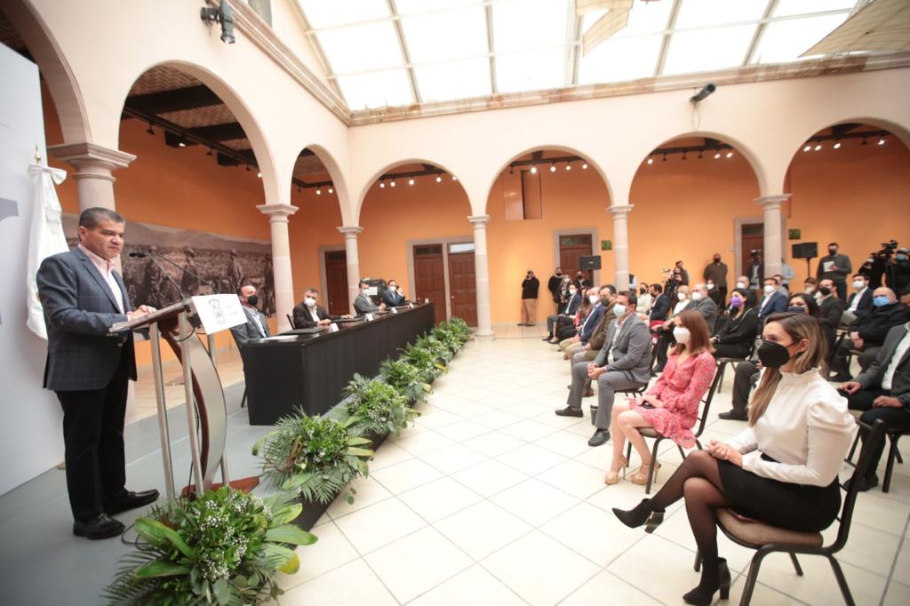 "Este convenio lleva detrás un gran mensaje: Esté como esté, Coahuila sigue con la unidad, el trabajo y privilegiando los intereses de las y los coahuilenses", señaló el Mandatario estatal.