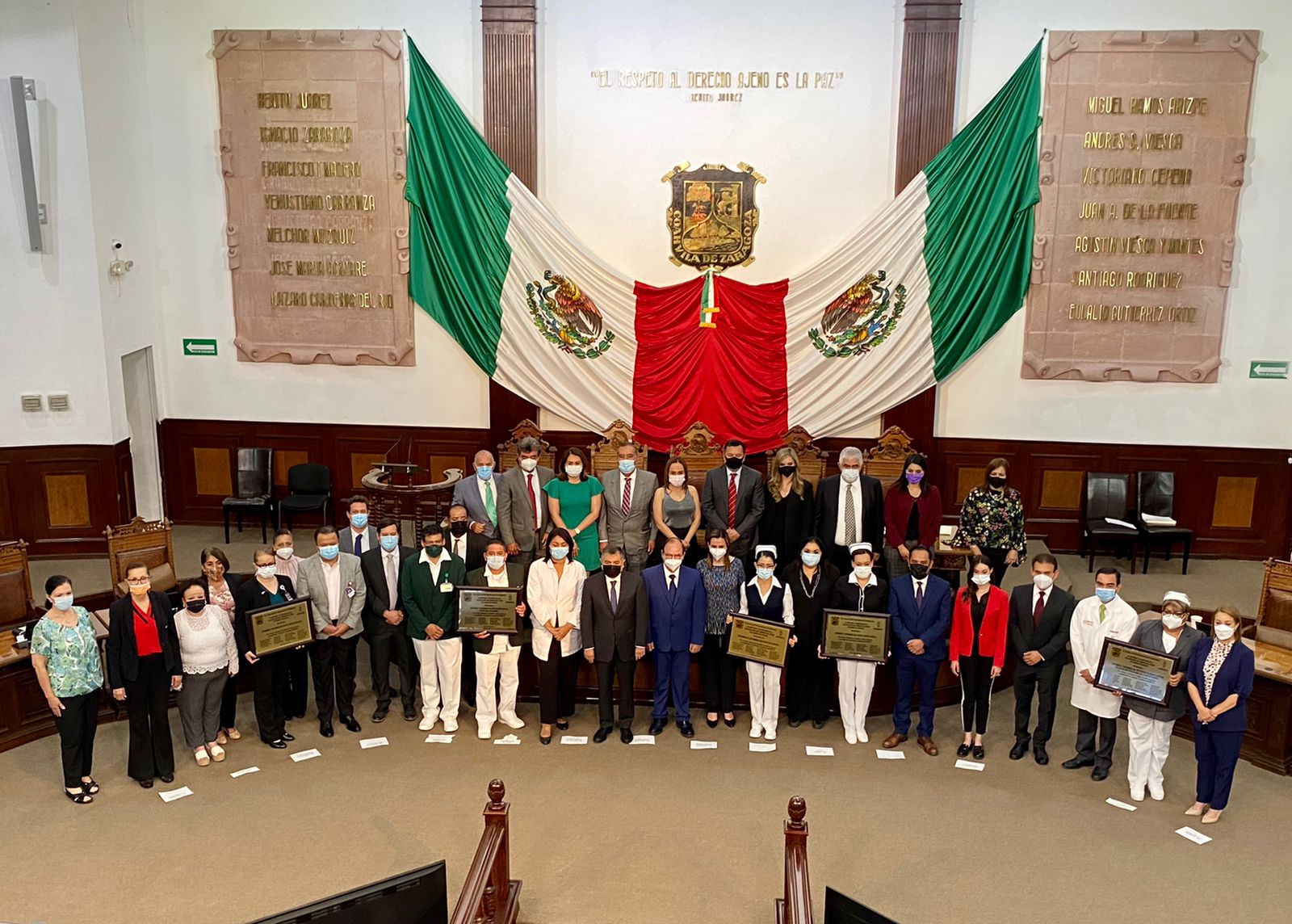 Durante el acto celebrado en el Pleno del Congreso ante la presencia de diputados de diversos partidos políticos, se entregaron también distinciones al personal del IMSS Coahuila, del ISSSTE Coahuila y de hospitales privados como el Christus Muguerza de Saltillo.
