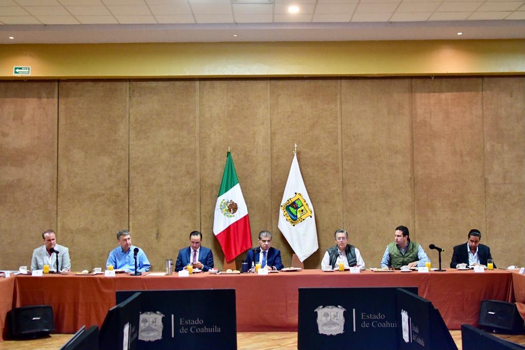 Manolo Jiménez Salinas, Alcalde de Saltillo; José María Morales Padilla, Alcalde de Ramos Arizpe; Everardo Durán Flores, Alcalde de Arteaga, y Teresa Guajardo Berlanga, Secretaria de Fiscalización y Rendición de Cuentas.