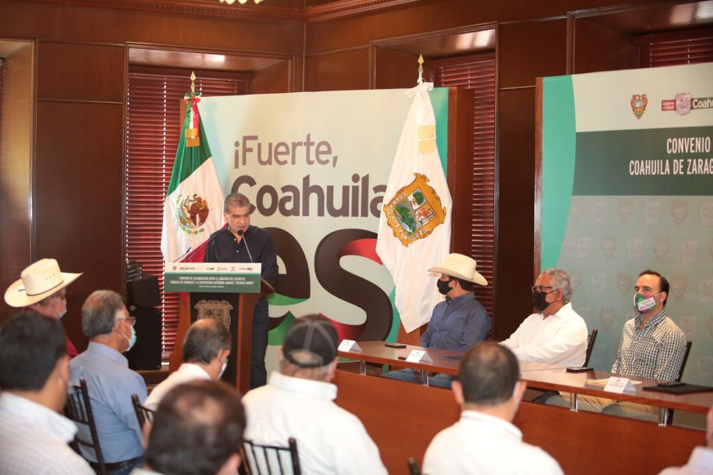 El gobernador Miguel Riquelme externó que con la firma de este convenio refrenda el compromiso público y ante la misma institución de fortalecer la relación entre el Gobierno del Estado, los trabajadores del campo y la Agraria Antonio Narro, respetando siempre su autonomía pero con el reconocimiento de que se necesita trabajar mano con mano, de ayuda mutua y la responsabilidad de extender los servicios universitarios a la comunidad.