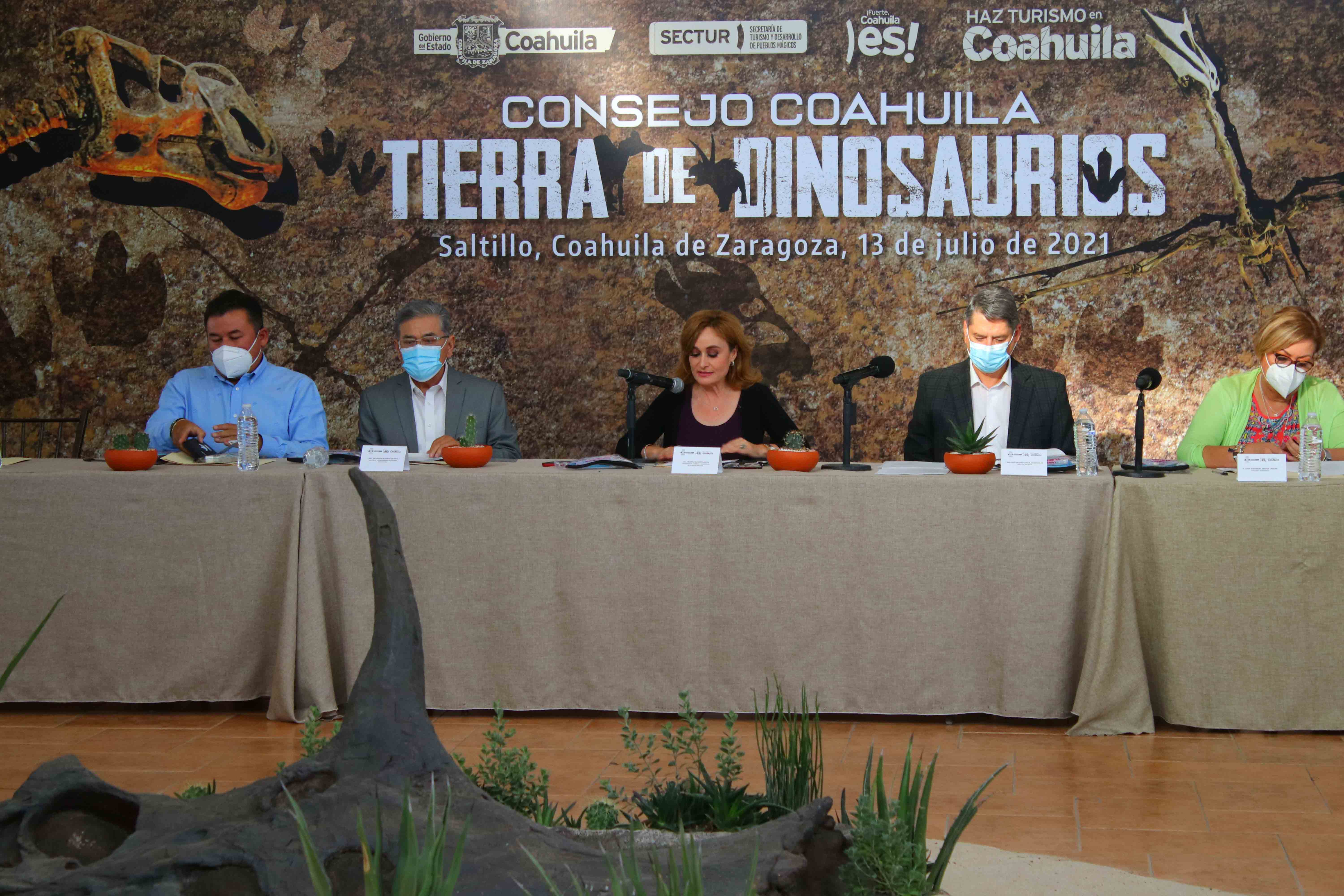 En el marco de la primera sesión ordinaria del Consejo Coahuila “Tierra de Dinosaurios”, encabezada por la Secretaria de Turismo de Coahuila, el rector Salvador Hernández Vélez tomó protesta como nuevo miembro del Consejo, que busca impulsar de forma interinstitucional, acciones para promover y difundir el legado paleontológico coahuilense por medio de la actividad turística.