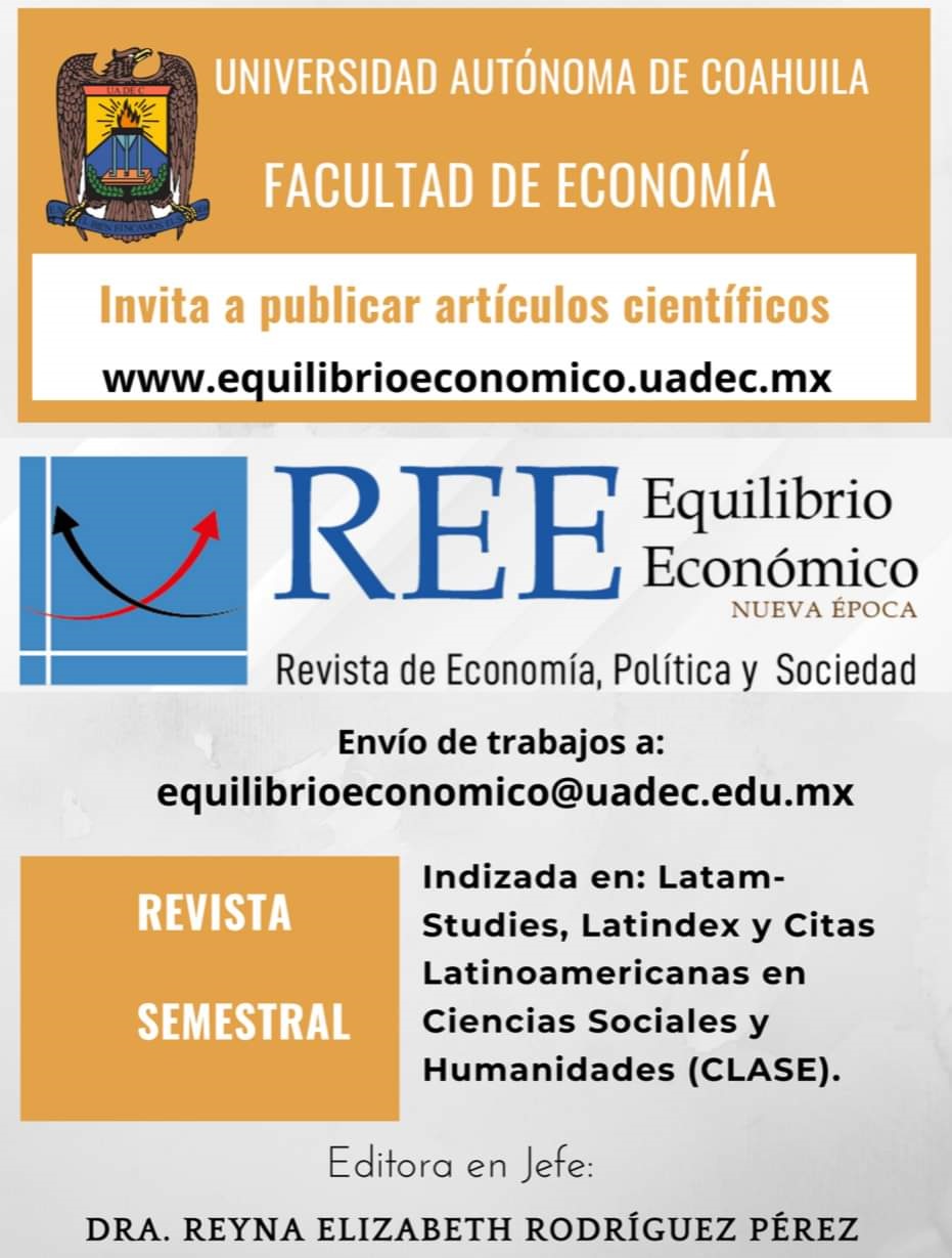 SALTILLO, Coahuila. 5 de agosto de 2021.- La Facultad de Economía de la Universidad Autónoma de Coahuila invita a la comunidad universitaria y al público en general a enviar colaboraciones para publicar en la revista “Equilibrio Económico”, la convocatoria estará abierta de manera permanente.