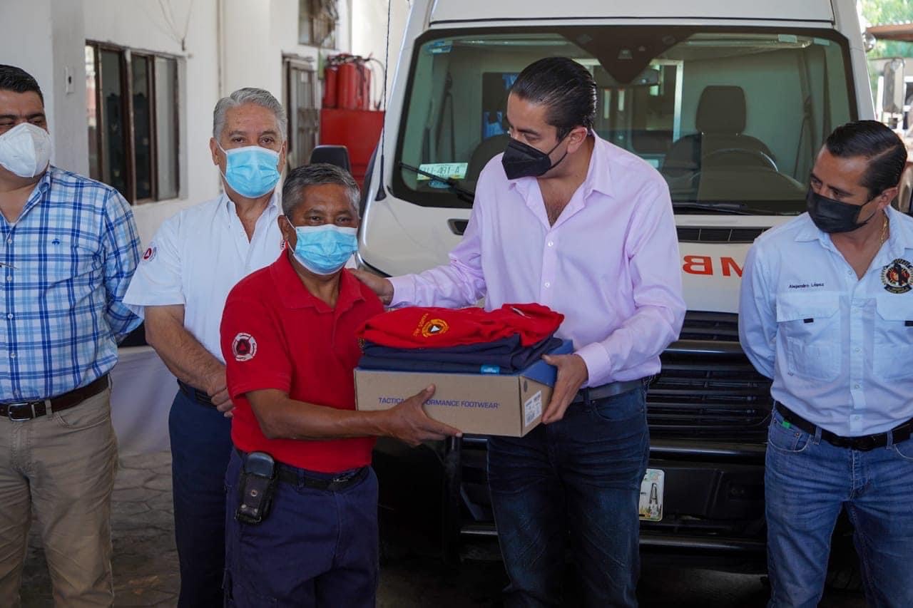 Destacó que en esta administración se han entregado 2 ambulancias nuevas para las funciones que realiza esta organización. Durante el evento se hizo entrega de 43 kits de uniformes, que constan de pantalón, camisa, chamarra y un par de botas tácticas, así como paquetes de carne asada para cada elemento.