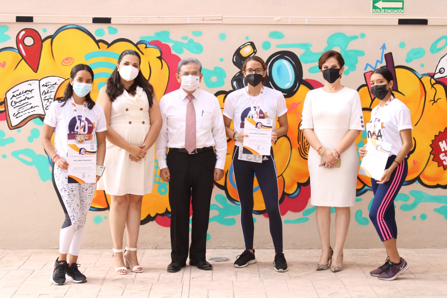 Por otro lado, para conmemorar el 40 aniversario de la Licenciatura en Mercadotecnia que ofrece Facultad de Economía y Mercadotecnia, se llevó a cabo la develación de un mural, así como una carrera atlética, premiando a quienes ganaron en la categoría varonil y femenil.