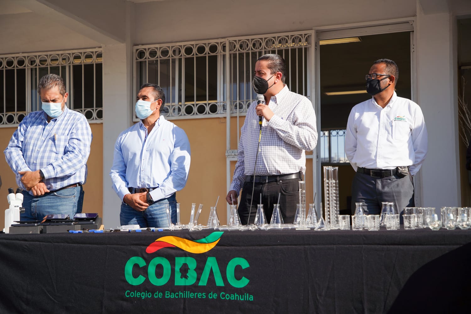 Tomas Gutiérrez, secretario de desarrollo social, informó que, al Colegio de Bachilleres de Coahuila, Plantel Ramos Arizpe, mediante el programa “Escuelas Al 50” se les entregó: un proyector, microscopios, equipo de laboratorio, mesas y material para construcción, para ambos turnos.
