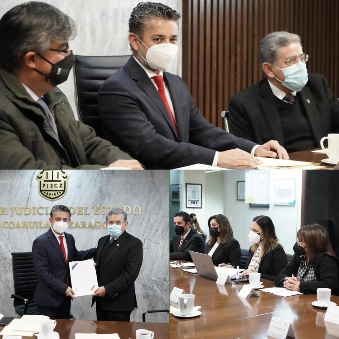SALTILLO, Coahuila. 13 de enero de 2022.- El rector de la Universidad Autónoma de Coahuila, Salvador Hernández Vélez, recibió el nombramiento y tomó protesta como Consejero Académico del Instituto de Especialización Judicial adscrito al Poder Judicial del Estado de Coahuila, durante la primera sesión ordinaria de este órgano no jurisdiccional, el cual quedó oficialmente integrado.