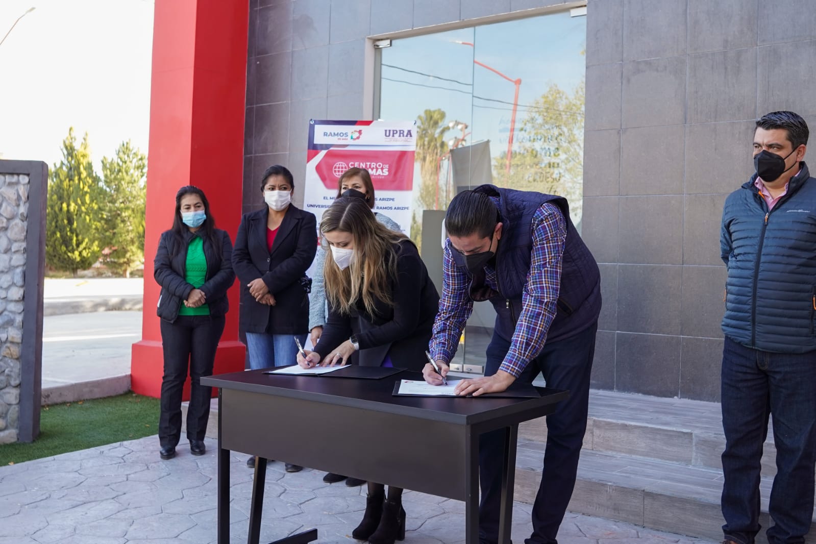 18 de enero del 2022, Ramos Arizpe, Coahuila de Zaragoza.- El Ing. José María Morales Padilla alcalde de Ramos Arizpe acompañado de la Lic. Cecilia de la Garza Martínez Rectora de la Universidad Politécnica de Ramos Arizpe firmaron un convenio de colaboración para la apertura de actividades en el Centro de Idiomas del municipio.