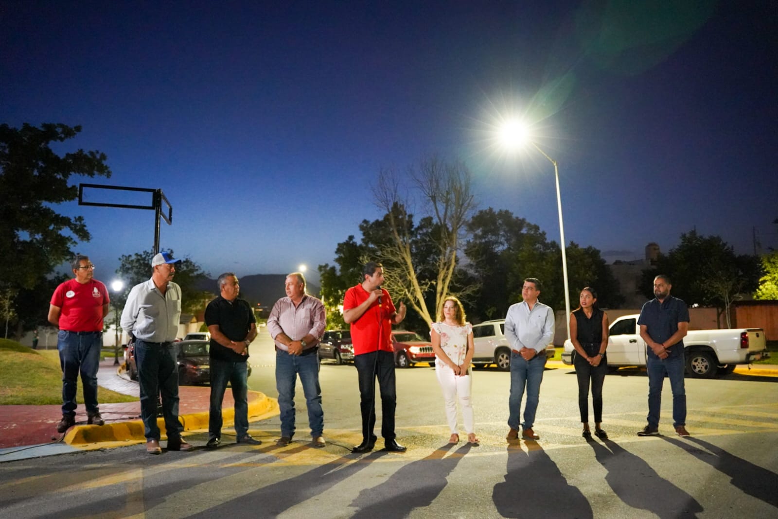 17 de junio del 2022, Ramos Arizpe, Coahuila de Zaragoza.- El alcalde de Ramos Arizpe, el ingeniero José María Morales Padilla, acompañado del secretario de ayuntamiento, Alejandro González Farías, el secretario de servicios municipales, Cesar Flores Jiménez y del director de obras públicas, Omar Limón Lara, hicieron entrega del programa "Tramos de iluminación" para las calles del fraccionamiento Portal Palomas.