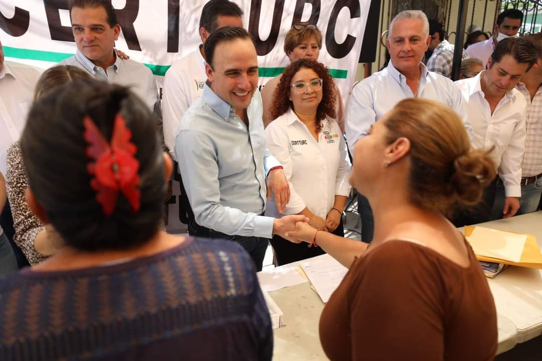 "Ya se inicia hoy el trámite para que tengan certeza jurídica con Mejora Coahuila, pero también el gobernador Miguel Ángel Riquel que trabaja por un tema que para él es prioritario, la seguridad, pues atiende este tema por el bien de las familias coahuilenses, "a nombre del Gobernador les decimos que vamos a seguir trabajando con mucha fuerza y mucha energía por nuestra gente".