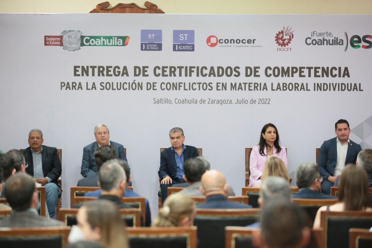 De igual manera, felicitó al Instituto de Capacitación para el Trabajo del Estado de Coahuila (ICATEC), que ha extendido sus funciones hoy a la certificación de los conciliadores conforme a los estándares oficiales de competencia laboral.