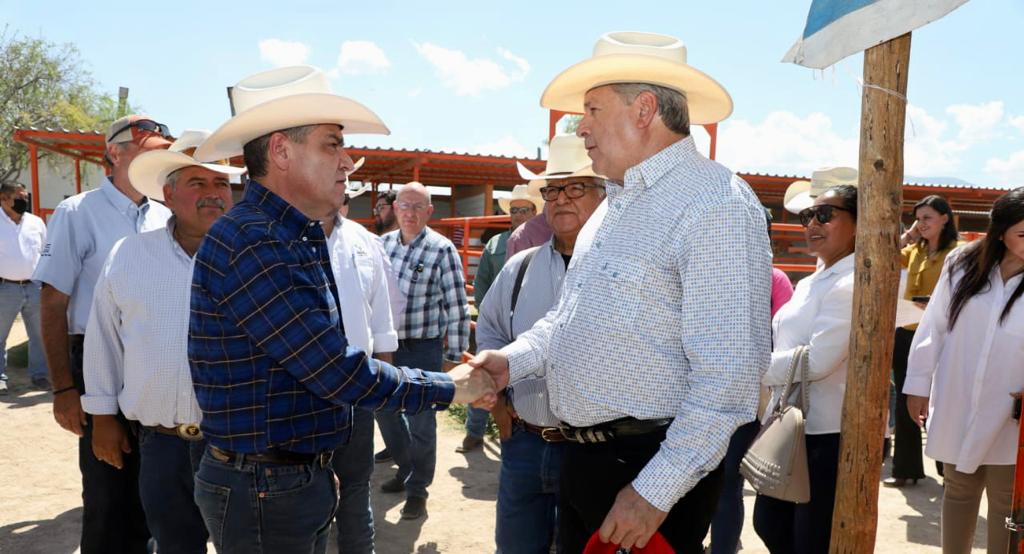 Saltillo, Coahuila de Zaragoza, a 20 de julio de 2022.- El alcalde José María Fraustro Siller y el gobernador Miguel Ángel Riquelme Solís encabezaron la entrega de sementales bovinos a productores saltillenses como parte del Programa de Calidad Genética.En las instalaciones de la Asociación Ganadera del Sureste de Coahuila, el alcalde Chema Fraustro destacó el trabajo en equipo, ya que es la primera ocasión que el municipio de Saltillo apoya en la inversión, para la adquisición de sementales y ayudar a los ganaderos locales.