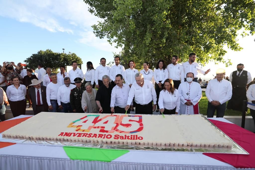 En representación del gobernador Miguel Ángel Riquelme, Fernando de las Fuentes Hernández, secretario de Gobierno, resaltó que Saltillo llega a sus 445 años con un alto desarrollo social y una gran seguridad en sus calles.