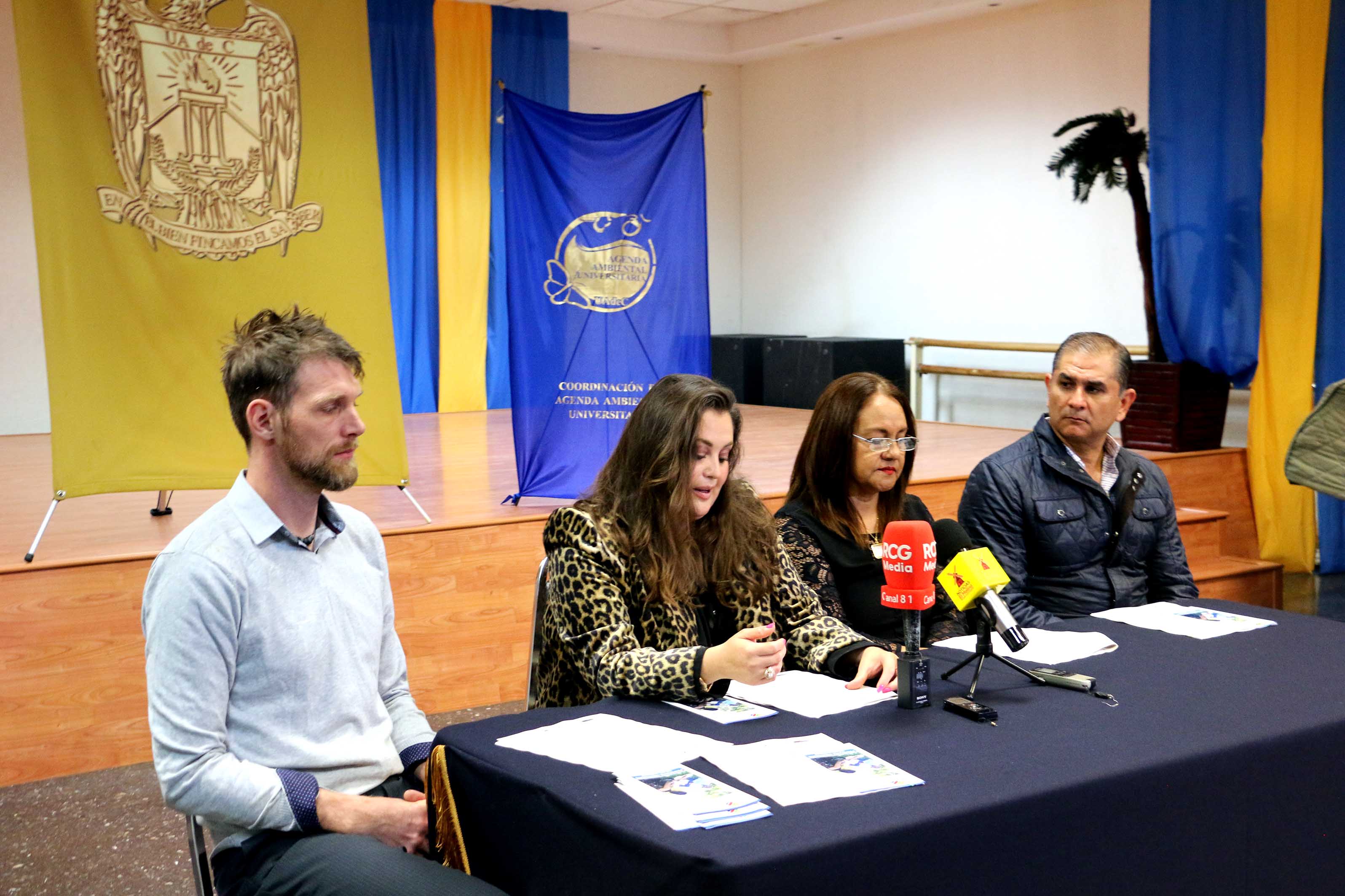 Los titulares de las dependencias universitarias, de Agenda Ambiental Graciela Hernández Gómez, y de Relaciones Internacionales, Juan Manuel Morales Santoyo, la directora del Atelier de Sustentabilidad, Ericka Toledo Zurita y Remie Neijts, docente del Tecnológico de Monterrey en Saltillo, presentaron la convocatoria que tiene como fin impulsar la capacitación de multiplicadores que promuevan prácticas innovadoras en el sector de la Educación Ambiental.