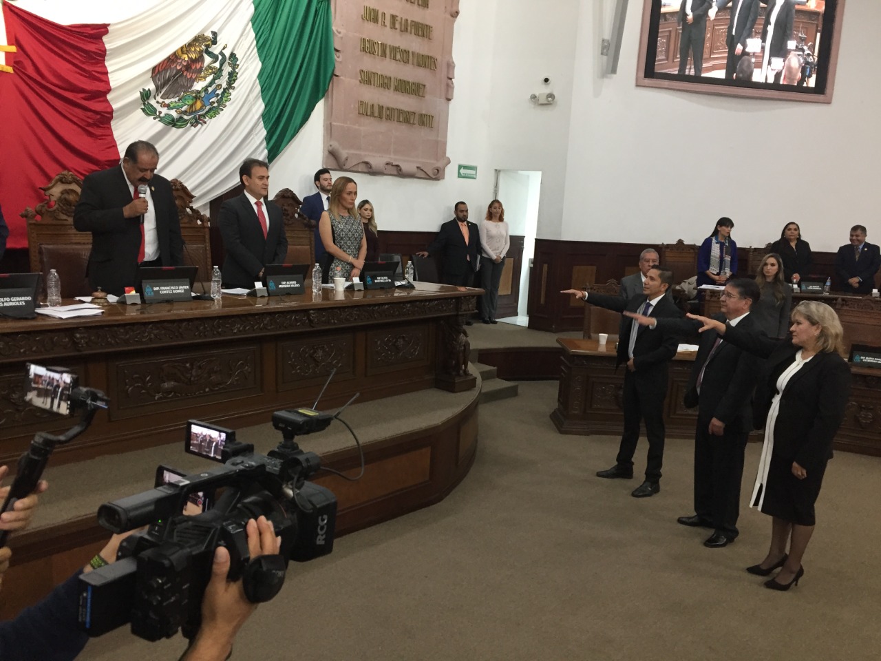 Al inicio de la Sesión, el Presidente de la Mesa Directiva, Diputado Francisco Javier Cortez Gómez, tomó la protesta de ley como Magistrados Supernumerarios del Tribunal Superior de Justicia del Poder Judicial del Estado de Coahuila de Zaragoza, a los Licenciados José Alberto Dávila Guerra, Dora Elena Rodríguez Herrera y José Samuel Borrego Rodríguez, quienes hoy, al rendir la protesta de ley, iniciaron sus funciones por un periodo de seis años.