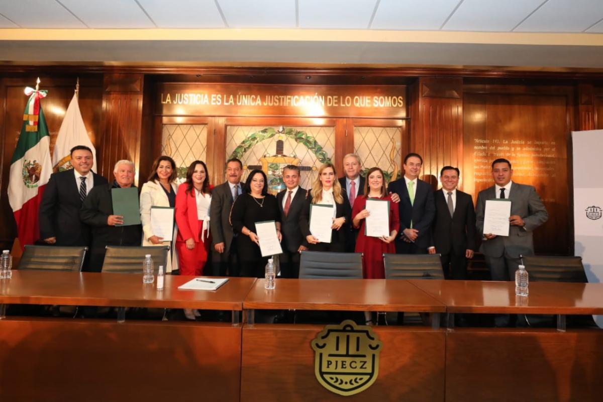 El evento fue presidido por Nazira Zogbi Castro, secretaria del Trabajo de Coahuila; Fernando de las Fuentes, secretario de Gobierno; Miguel Mery Ayup, presidente del Poder Judicial, así como Jaime Bueno Zertuche, diputado federal.