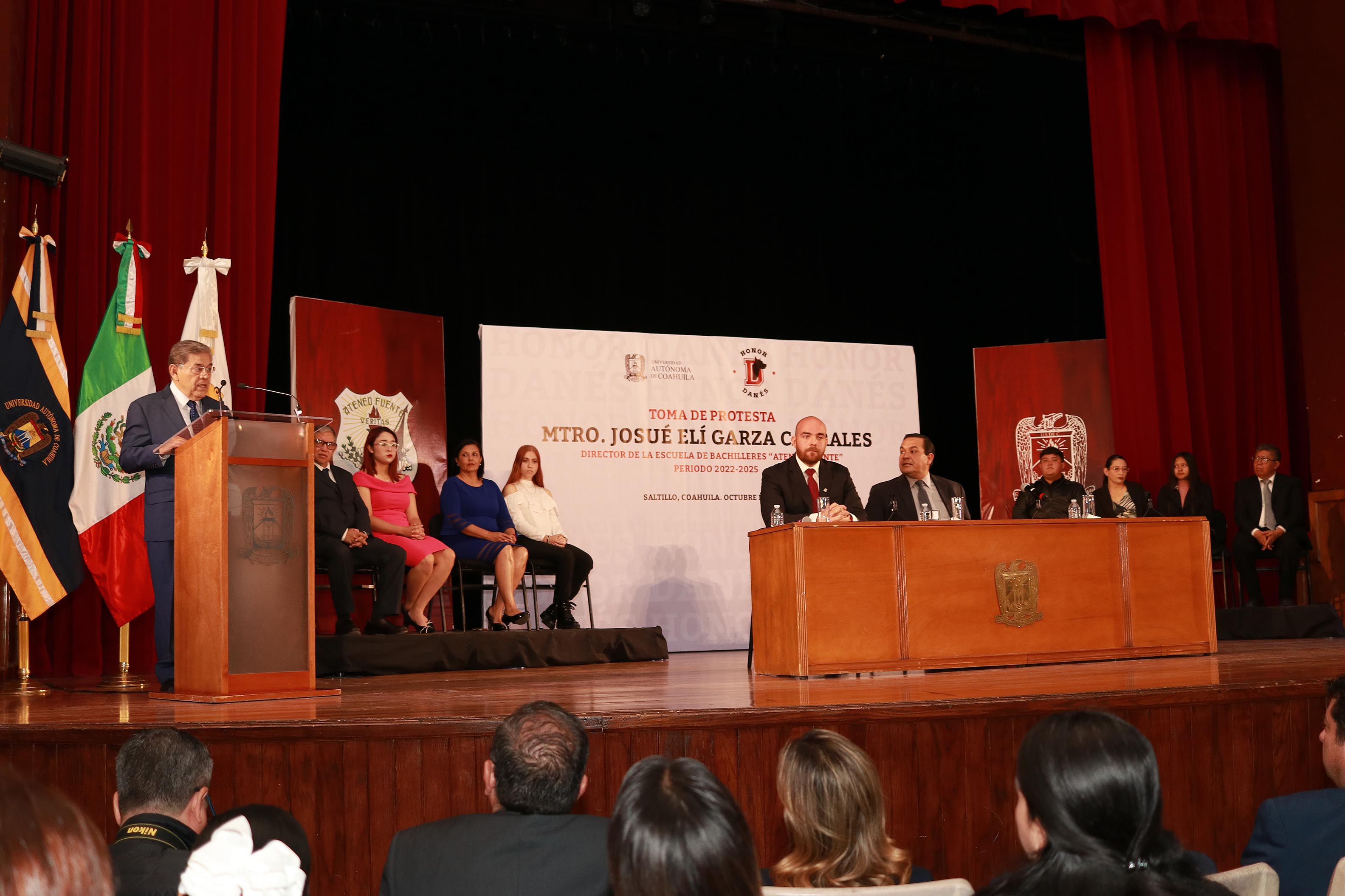 En su mensaje, el rector Salvador Hernández Vélez dijo que el Ateneo Fuente es la piedra fundacional de la Universidad Autónoma de Coahuila y pionero en educación laica, gratuita y de calidad, el cual nació en la época de las leyes de reforma, por lo que la encomienda que tiene el ahora director Josué Elí Garza conlleva una enorme responsabilidad, porque es la escuela de bachilleres de mayor tradición, no solo en Coahuila sino en el Norte de México.