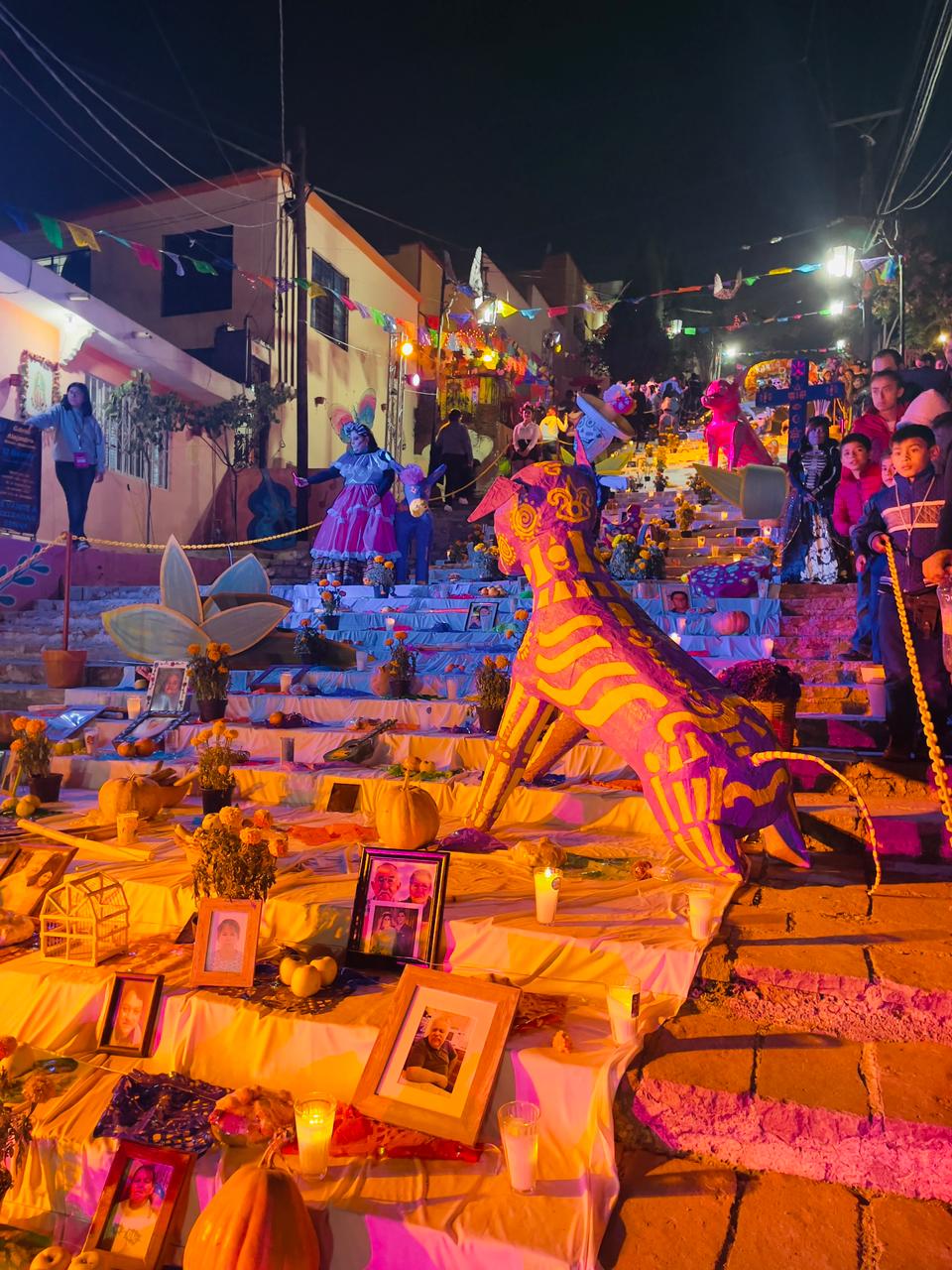 Saltillo, Coahuila de Zaragoza, a 1 de noviembre de 2022.- El alcalde José María Fraustro Siller encabezó el recorrido que hicieron los integrantes del Ayuntamiento y de la administración municipal en el monumental altar de muertos en las escalinatas del barrio de Santa Anita, dentro de las actividades del Festival Ánimas del Desierto.