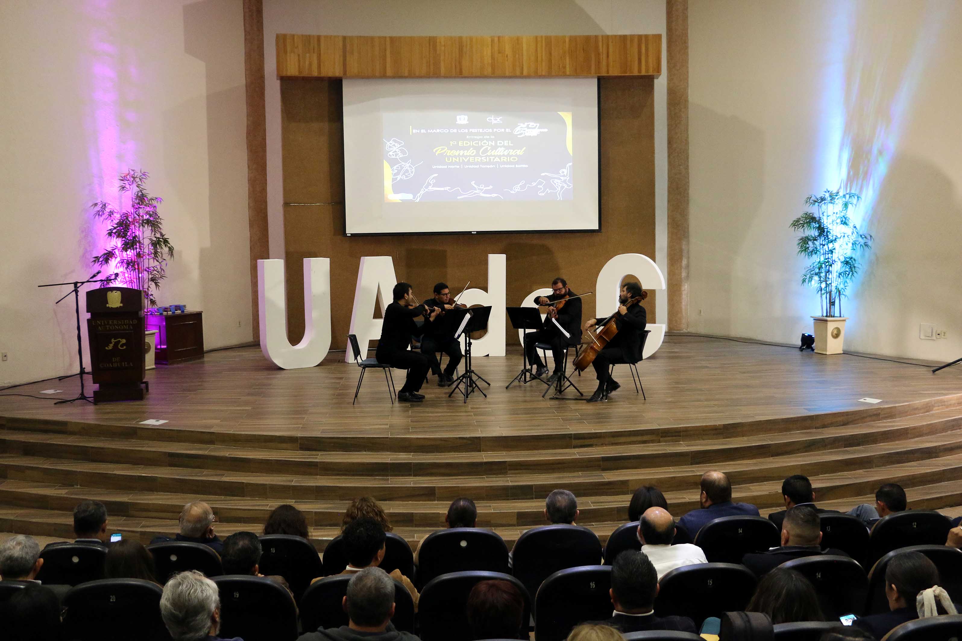 El evento se desarrolló en el Aula Magna “José María Fraustro Siller” del Campus Poniente, con la presencia del rector de la máxima casa de estudios, Salvador Hernández Vélez, el coordinador de Unidad Saltillo, Julio Saucedo Zul, la coordinadora general de Difusión y Patrimonio Cultural, Ana Sofía Rodríguez Cepeda, directoras y directores de Escuelas y Facultades de la UAdeC, funcionariado universitario, invitados especiales, los galardonados y sus familias.