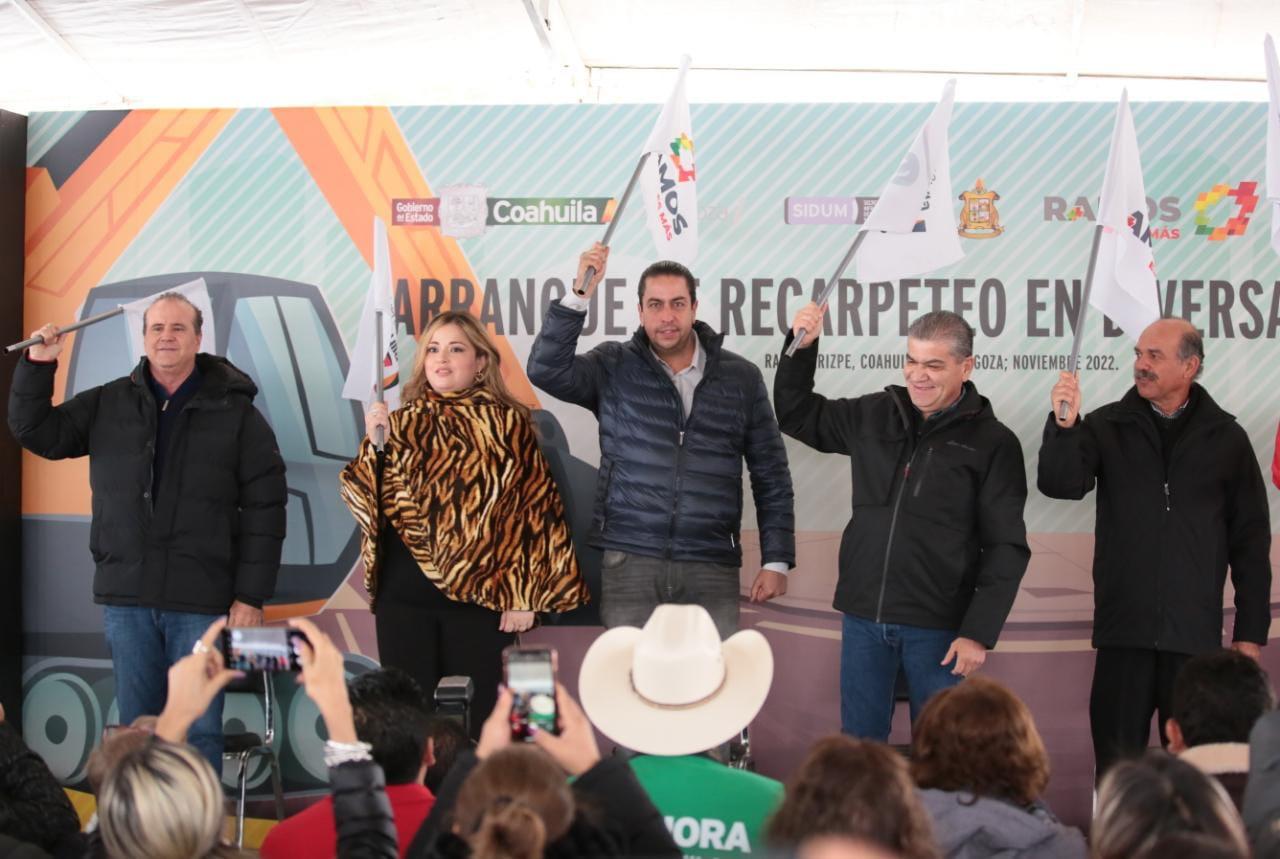 Ramos Arizpe, Coahuila de Zaragoza; a 17 de Noviembre de 2022.- En inversión conjunta Estado-Municipio, el gobernador Miguel Ángel Riquelme Solís y el alcalde José María Morales Padilla pusieron en marcha los trabajos de recarpeteo y pavimentación de diversas calles de Ramos Arizpe, en los que se aplican cerca de 25 millones de pesos.Esta inversión se suma a los 75 millones de pesos en diversas obras que se anunciaron la semana pasada en este mismo municipio.