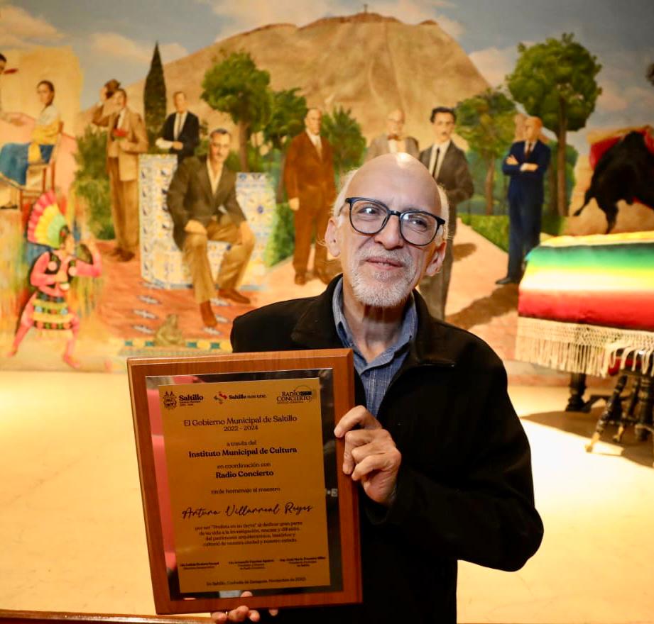 Como parte de la ceremonia, en la que estuvieron presentes sus familiares y amigos, el arquitecto Arturo Villarreal Reyes recibió una placa por parte del alcalde José María Fraustro y del cronista de la ciudad Armando Fuentes Aguirre “Catón”.