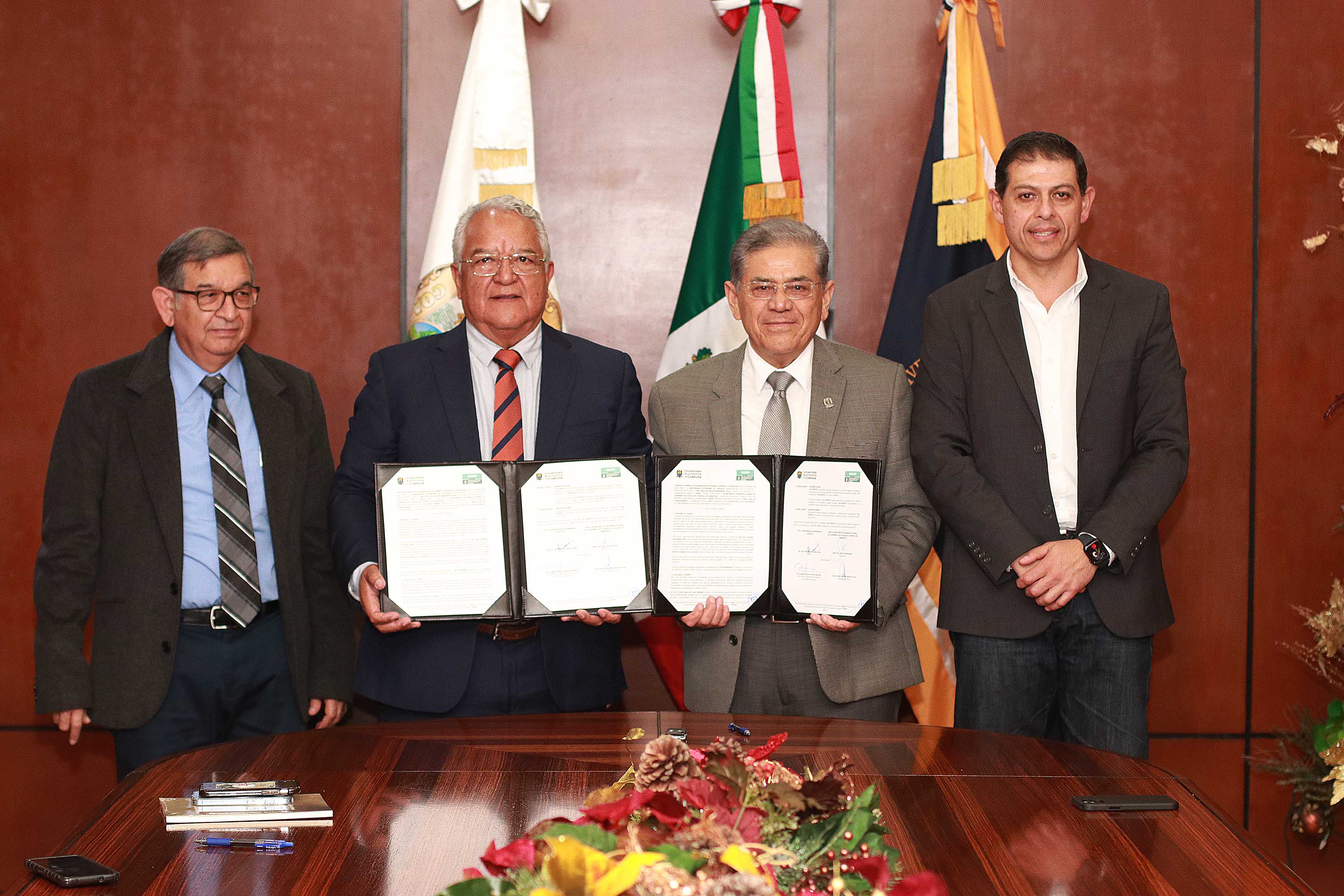 El documento fue signado en la Sala de Juntas de Rectoría por el rector de la máxima casa de estudios, Salvador Hernández Vélez, el coordinador general de Vinculación e Innovación Productiva, Octavio Pimentel Martínez, el titular de la Secretaria de Desarrollo Rural, José Luis Flores Méndez y el secretario técnico, Arnoldo Martínez Cano.
