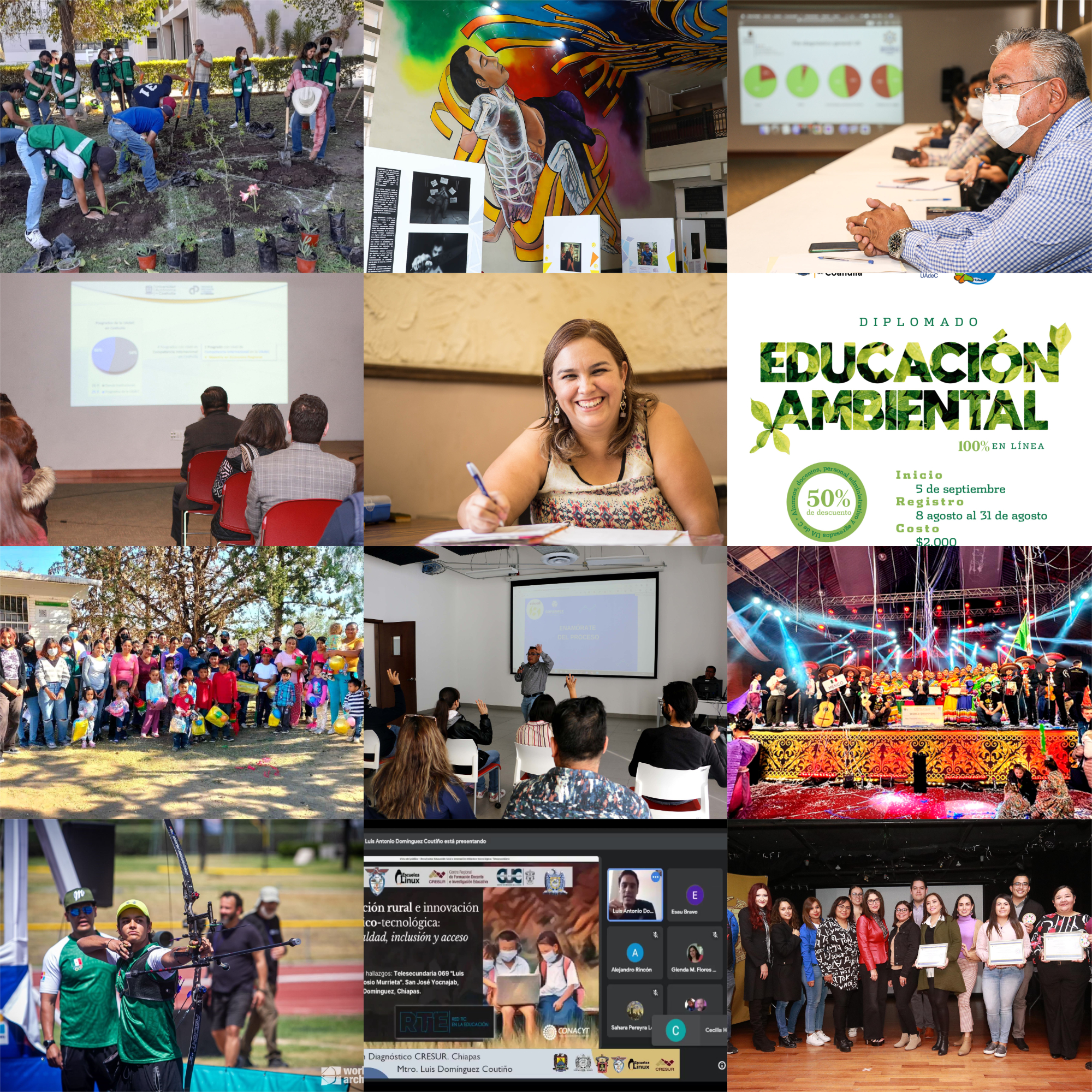 Por parte de la Coordinación de Agenda Ambiental Universitaria, se realizará el Segundo Congreso de Educación Ambiental, el Encuentro de Universidades por la Sostenibilidad: Región Noreste, y el Encuentro Universitario Estudiantil de Red de Promotores Ambientales; continuará con el Taller Carta de la Tierra a alumnos de nuevo ingreso de la UAdeC, el Taller de Formación de Promotores Ambientales COMPLEXUS, la Campaña Permanente de la Cátedra Latinoamericana de los ODS, y el Fortalecimiento de los indicadores de Green Metrics.