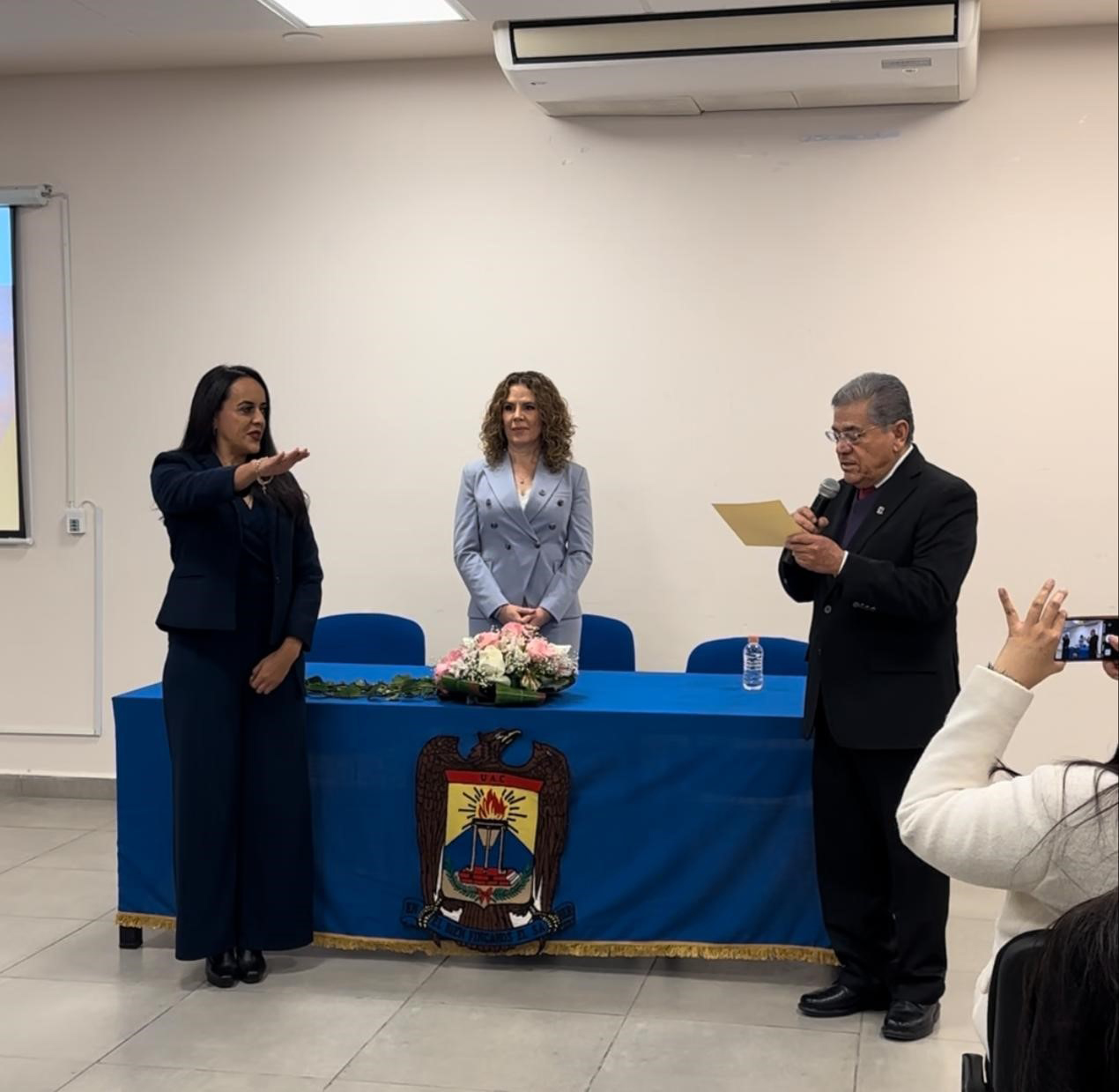 TORREÓN, Coahuila. 27 de enero de 2023. Ante el Consejo Directivo de la Preparatoria Venustiano Carranza de la Universidad Autónoma de Coahuila, docentes, estudiantes y funcionariado, el rector Salvador Hernández Vélez, tomó protesta a la nueva directora del plantel, la MC Jessica Zapata Escalera.
