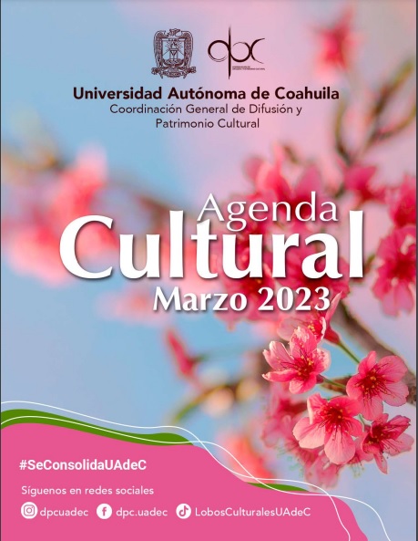 SALTILLO, Coahuila. 2 de marzo de 2023. La Universidad Autónoma de Coahuila a través de la Coordinación de Difusión y Patrimonio Cultural, invita a la comunidad universitaria y el público en general a disfrutar de las actividades programadas en la Cartelera Cultural de marzo 2023.