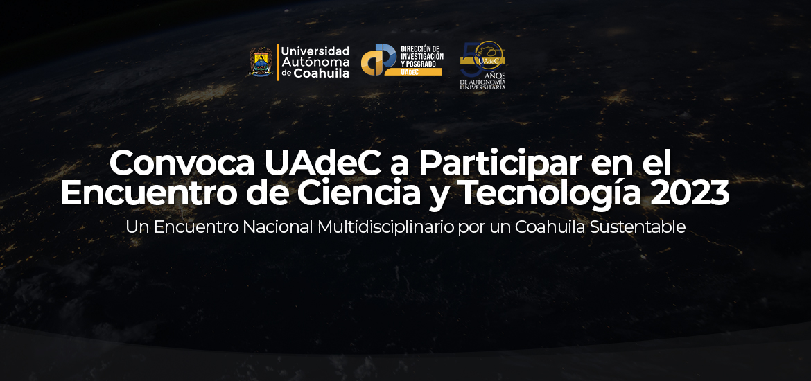 SALTILLO, Coahuila. 18 de abril de 2023. La Universidad Autónoma de Coahuila a través de la Dirección de Investigación y Posgrado convocan a la comunidad científica y académica a participar en el “Encuentro de Ciencia y Tecnología 2023: Un Encuentro Nacional Multidisciplinario por un Coahuila Sustentable” (ECyT 2023), que se llevará a cabo el 7 de septiembre de 2023 en las instalaciones del Campus Arteaga.