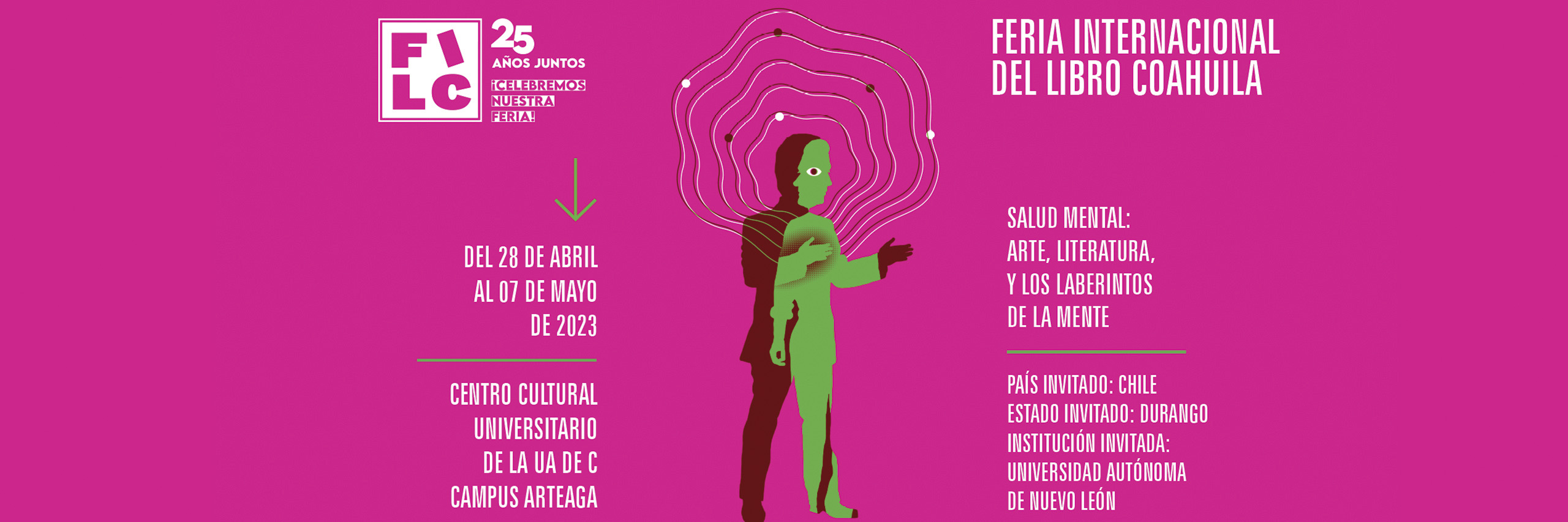 ARTEAGA, Coahuila. 19 de abril de 2022. La Universidad Autónoma de Coahuila en conjunto con la Secretaría de Cultura del Gobierno del estado, invita a disfrutar de los eventos que tiene programados para la XXV Feria Internacional del Libro de Coahuila FILC 2023, que inicia a partir del 28 de abril al 7 de mayo en el Centro Cultural Universitario de Arteaga.