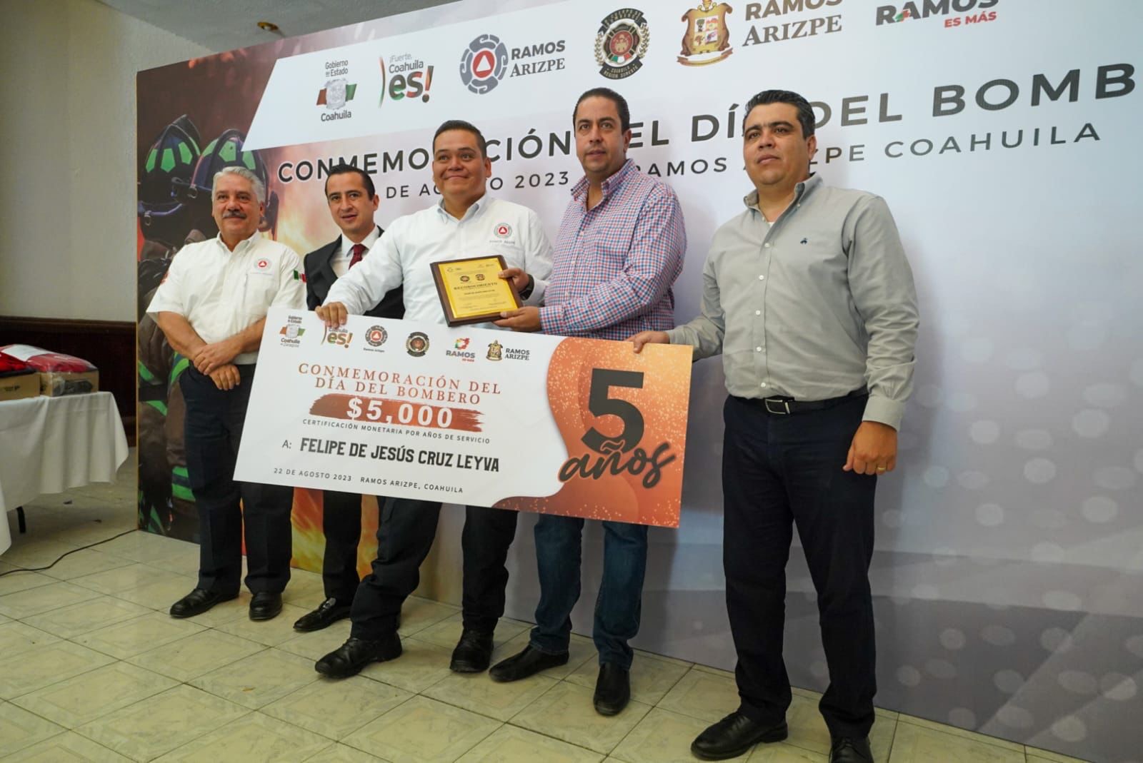 Con la entrega de uniformes y reconocimientos especiales por años de servicio, el alcalde Chema Morales Padilla celebró a los bomberos de Ramos Arizpe en su día.Junto al secretario del Ayuntamiento, Alejandro González Farías y al director de Protección Civil, Francisco Sánchez Aguirre, el edil encabezó el festejo para los apagafuegos a quienes reconoció por su entrega permanente, no solo en contingencias registradas en la localidad, sino con el apoyo a siniestros en los municipios vecinos.